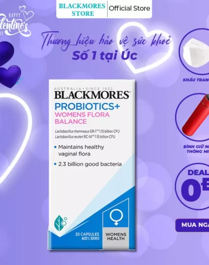 thuốс phục hồi hệ vi sinh “cô bé” Blackmores Probiotics+ Womens Flora Balance cung cấp 2,3 tỷ lợi khuẩn. Sự kết hợp đặc biệt của các chủng probiotic giúp thúc đẩy và cân bằng hệ vi sinh “cô bé”. Nó giúp phụ nữ ngăn ngừa khí hư, huyết trắng, mùi